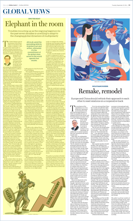 本文原文发表在中国日报国际版,原标题为 "Elephant in the room"