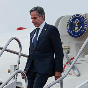 当地时间2024年10月10日,老挝万象,美国国务卿布林肯抵达老挝,出席第44届和第45届东盟峰会。 澎湃影像