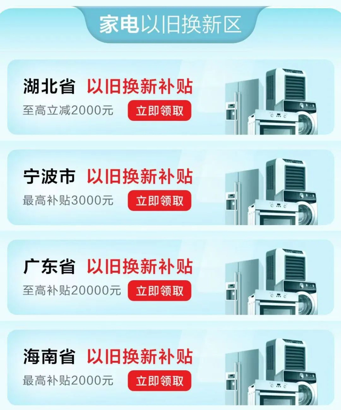 消费者在云闪付App的活动页面点击所在地区,可直接了解该地区的具体补贴内容,领取最高2000元的家电焕新补贴。
