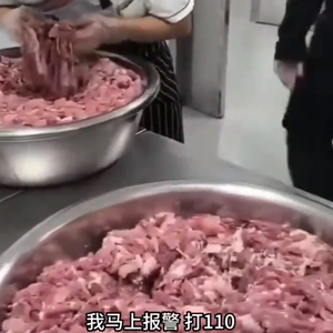 相关视频显示,工作台面放着满满几大盆肉。一位家长称:“整盆肉都是臭的,我看你们怎么炒给小孩子吃。”