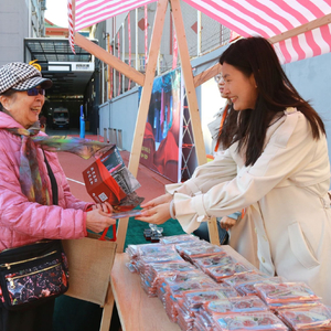 10月19日,返校校友领取校园文创纪念品。学校供图