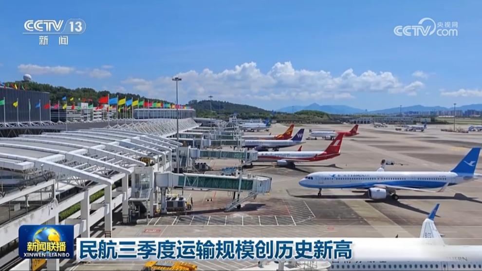 央视网消息(新闻联播):记者从中国民航局了解到,今年三季度民航全行业共完成运输总周转量403.5亿吨公里,同比增长19.8%。客货运规模创历史新高。