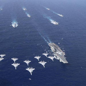 10月下旬,海军辽宁舰编队开展远海实战化训练。期间,辽宁舰、山东舰编队首次开展双航母编队演练。 新华社 图
