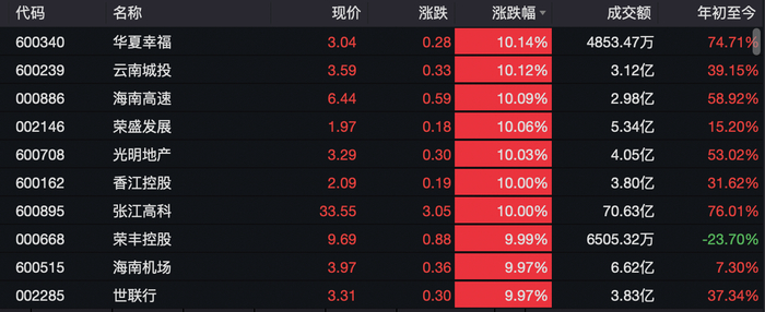 11月5日开盘后,地产股快速上扬。据Wind金融终端,截至收盘,房地产(申万)上涨约4.18%,涨幅居前;其中,华夏幸福、云南城投、海南高速、荣盛发展、光明地产、绿地控股等14只股票涨停,金融街、北辰实业等涨幅在5%以上。这也是华夏幸福近期收获的第7个涨停。