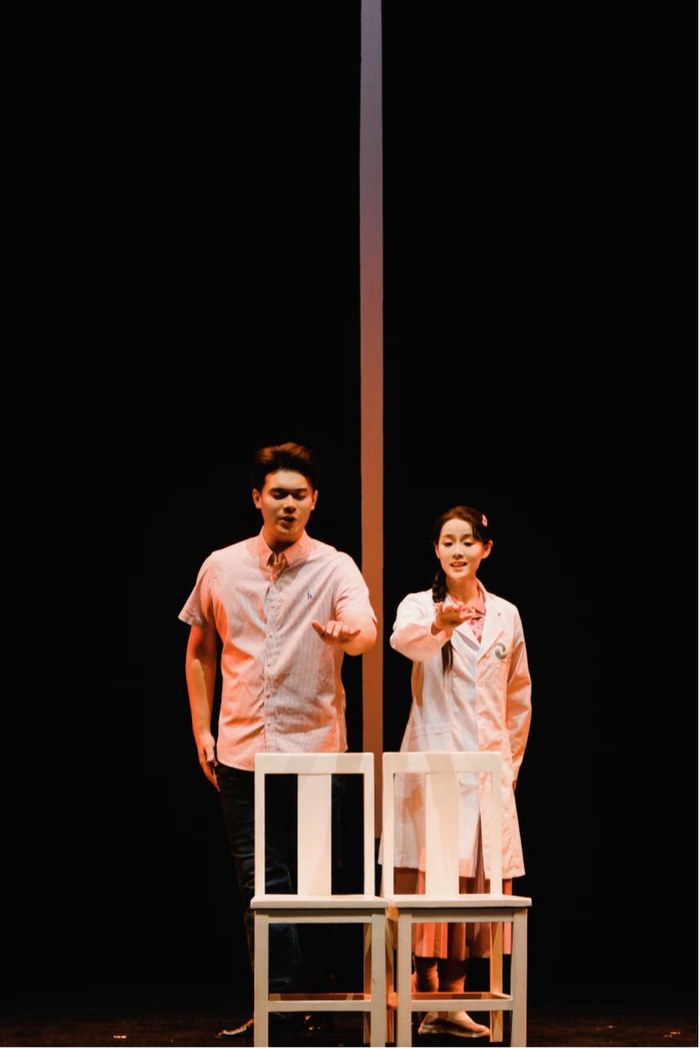 扬剧《推拿》舞台设计简约而现代,力求在第一时间抓住观众的视觉。一张推拿台,几把椅子,数位身着白大褂的演员,一声“上钟啦”,便将观众带进沙宗琪推拿中心的故事中,渐渐走入这群盲人推拿师的内心世界。剧中人物在舞台上实现蜕变,饰演沙复明和都红的两位年轻演员也得到了快速成长。1999年出生的主演曹昊饰演中年盲人推拿师沙复明,另一位90后演员刘颖饰演盲女都红。曹昊成功克服了年龄和经历上与角色的差异,成功地将沙复明的坚韧和敏感,以及对都红深深的爱慕之情表达出来。刘颖则采用了“睁眼瞎”的表演方式,保持高度的专注和信念感,抑制眼睛的随意动作,这对善用眼神表演的戏曲演员来说无疑是一次巨大的挑战。