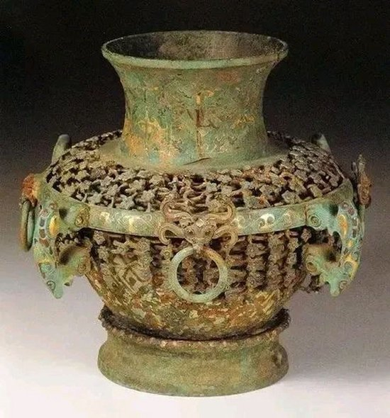 曾攀:曾国青铜器和楚国青铜器以工艺精美、纹饰繁复而著称。出土于曾侯乙墓的曾侯乙尊盘是一套酒器,尊口、盘口和4个抠手均采用失蜡法铸造,做成细密繁复、玲珑剔透的镂空纹饰。尊的颈部有4条圆雕的龙形装饰,它们头部向外,口吐长舌,身体也是由镂空纹饰组成。尊体使用了34个部件,通过56处铸焊连成一体,造型、装饰、设计可谓鬼斧神工,是战国时期青铜工艺的巅峰之作。