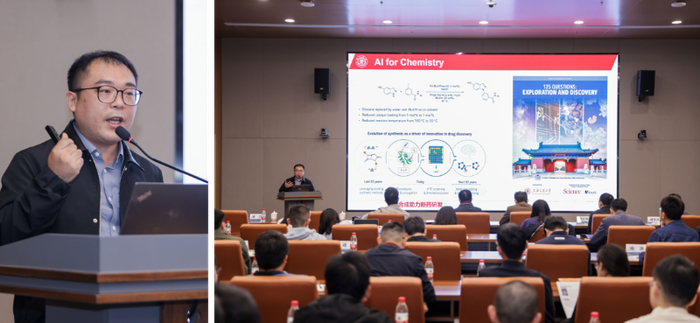 许岩岩副教授作了《科学大模型加速有机化学合成》的工作报告,他介绍了团队最新研究成果—白玉兰化学大语言模型BAI-Chem。这是首个具备反应生成与“人在环路”反馈优化能力的化学大模型,具有逆合成线路规划、反应条件生成、反应产率预测、实验条件优化迭代等化学合成全功能。他指出,将该模型应用于有机合成湿实验探索,证实了大语言模型在实验指导上的显著优势,有望大幅提升科学研究的速度与准确性,并在产业方面对药物研发、新物质发现、新材料研发形成强力支撑。