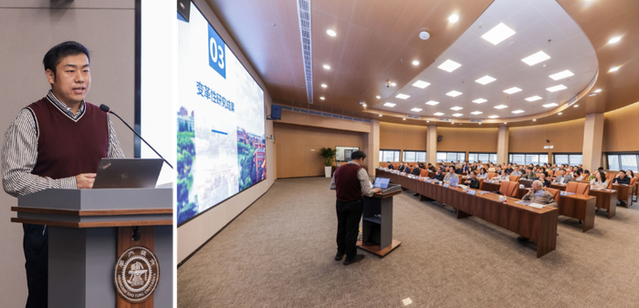变革性分子前沿科学中心副主任梁正主持论坛并汇报了中心成立以来的建设进展。在各部门支持下,中心在平台建设、团队建设、科研成果以及学术交流等方面的取得了显著的进步。中心将围绕目标和定位积极推行变革性与交叉性研究,期望此次AI论坛推行学术策源与前瞻布局,促进人工智能与化学、生物、材料和能源领域开展深入交叉与合作,加速中心的科研创新。