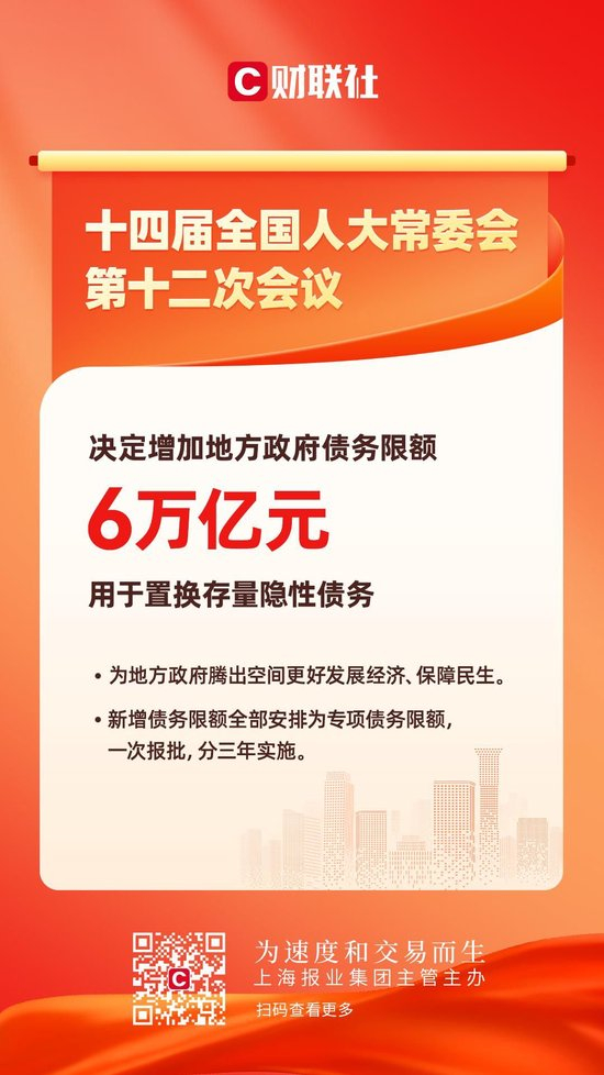 全国人大常委会批准增加6万亿元地方政府债务限额置换存量隐性债务