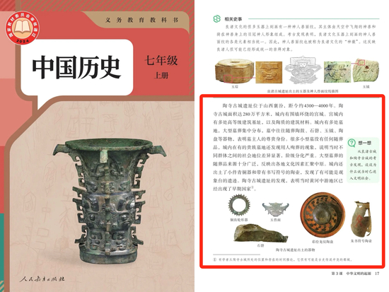 △人教版七年级历史教材 红框部分为陶寺遗址相关内容
