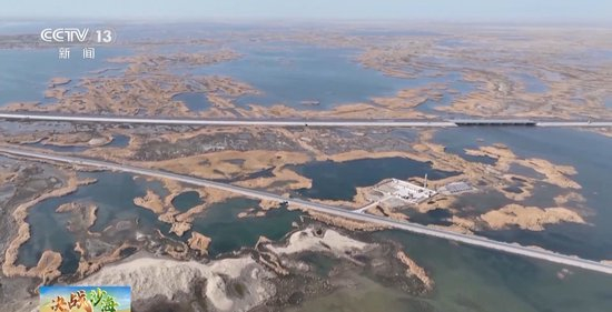 即将离开的时候,我们来到了塔里木河尾闾台特玛湖,这片曾经干涸的水面,如今水波荡漾、水鸟飞翔。原有的218国道早已恢复通行,两条新建的出疆大通道,尉若高速公路和库格铁路从湖中穿行而过,承载着发展的希望一路伸向远方。
