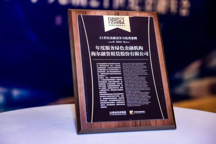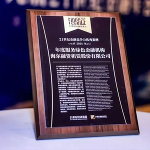 11月9日,围绕金融高质量发展、服务新质生产力、增强发展新动能,由南方财经全媒体集团指导、21世纪经济报道主办的“第十九届21世纪金融年会”在北京举办,2024年21世纪金融竞争力优秀案例同步揭晓,海尔融资租赁股份有限公司入选年度服务绿色金融机构。