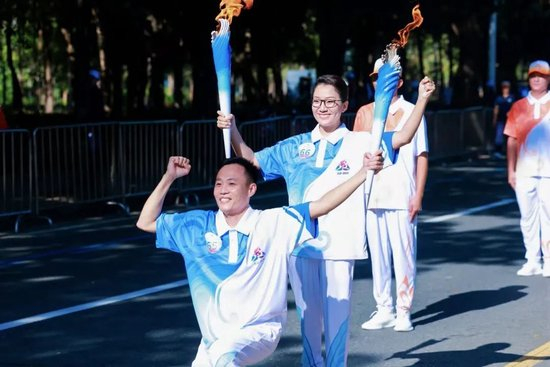 运动会总指挥部副总指挥、海南省委常委、省委统战部部长尹丽波宣布火炬实地传递开始。整个现场瞬间被点燃,欢呼声、掌声如汹涌的浪潮般此起彼伏。火炬手们神情庄重而自豪,高高擎起象征着希望与团结的火炬,向热情的观众们展示后,迈着坚定有力的步伐起跑,正式开启了这场意义非凡的火炬传递之旅。运动会总指挥部副总指挥、海南省人民政府党组成员李锋出席起跑仪式。