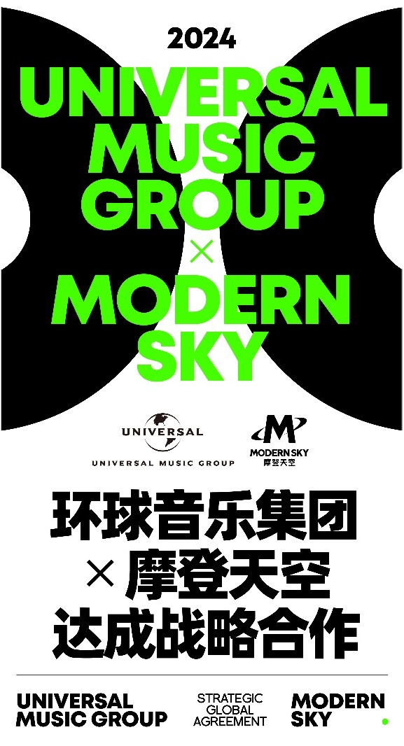 在宣布这一消息时,环球音乐大中华区主席暨首席执行官徐毅表示,“摩登天空在定义和推动中国原创音乐的发展进程中具有重要的价值,我们很高兴能够与之成为合作伙伴。这一合作不仅将推动中国原创音乐在全球市场的影响力,还将向世界展示当今中国年轻一代的独特活力与创造力。我们共同的目标是在全球舞台上放大这些声音,彰显中国原创音乐在国际文化交流中的重要角色。”