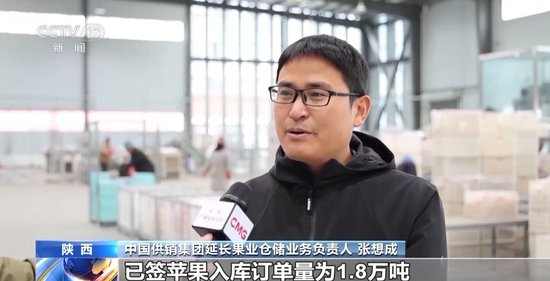 中国供销集团延长果业仓储业务负责人 张想成:已签苹果入库订单数量达到1.8万吨,日均出库量为300吨,苹果可以一直存储销售到明年9月。