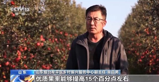 山东烟台牟平区乡村振兴服务中心副主任 栾日昇:优质果率能够提高15个百分点左右,机械化施肥、机械化除草、机械化病虫防控、机械化果实运输,亩均节省人工成本达到2000元以上。
