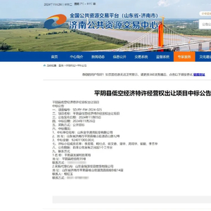 11月26日,济南公共资源交易中心官网发布了《平阴县低空经济特许经营权出让项目中标公告》,招标信息显示,项目招标人为平阴县发展和改革局,中标单位为山东金宇通用航空有限公司,中标金额为9.24亿元。
