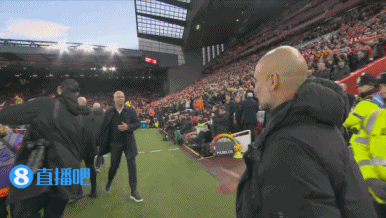 两队主帅斯洛特和瓜迪奥拉握手致意。↓