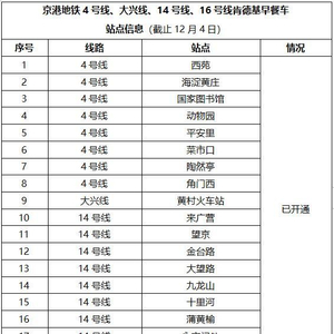 新京报讯 据京港地铁消息,为给乘客提供更加丰富多样的早餐选择,进一步提升乘客出行体验。近日,京港地铁在4号线、大兴线、14号线及16号线的20个车站内,陆续推出早餐服务,具体站点信息公布。