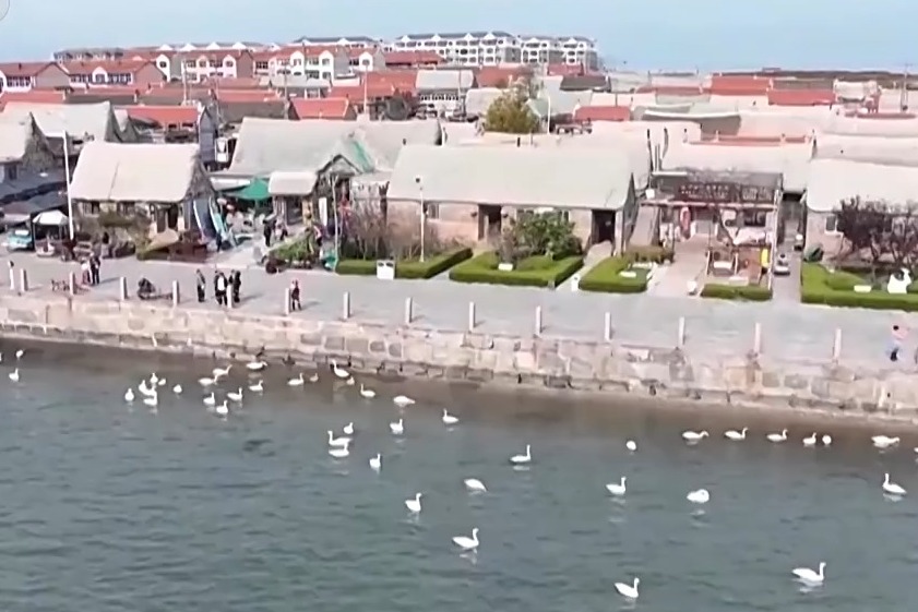 山东省威海市烟墩角村委会委员 梁云秀:为了不惊扰大天鹅,每逢过年过节,我们村的村民都不准放鞭、放炮,禁止无人机飞行。