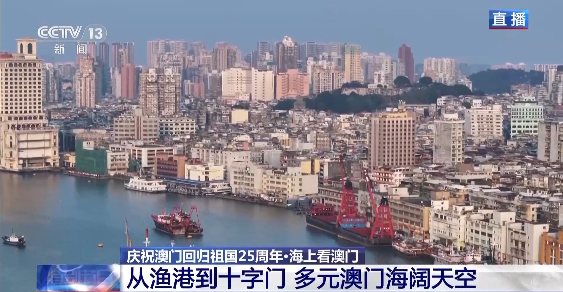 总台央视记者 郑怡哲:我现在在澳门半岛西面的内港码头,我们将乘坐总台报道船,从这里出发,沿途看看澳门这些年产业的发展与变迁。