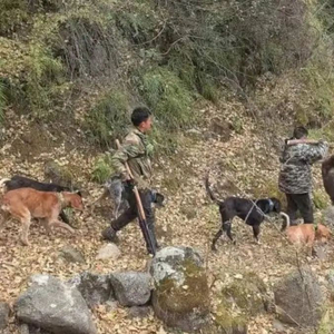 丹巴县境内峡谷深邃、沟壑众多,全县最低海拔为1700米,最高海拔为5820米,相对高差达4000多米,是全国猎捕野猪难度最大的地方之一。“猎狗一上山就兴奋,带着你往前奔,冬天下了雪,山路还很滑,稍有不慎可能就会失足和猎狗一起坠崖。”吴浩介绍,在一次追捕中,就有4只猎犬坠崖遇难。