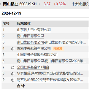 今日,南山铝业披露了回购股份事项前十名股东和前十名无限售条件股东的持股情况,记者注意到,截至2024年12月19日,全国社保基金114组合的持股数相比于三季度末时,减少了约685万股,不过持股数仍有1.5亿股,排在前十大流通股东的第七位。