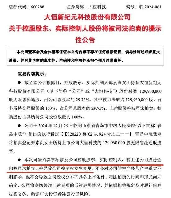 同日晚间,大恒科技(600288)、华丽家族(600503)也发布了与徐翔案件相关的资产拍卖情况。