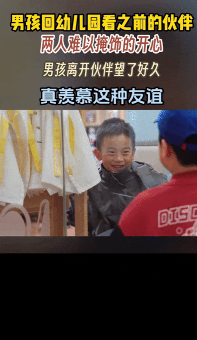 北京某幼儿园,一位毕业的小朋友回访母校,直奔昔日伙伴班级。伙伴闻声跑向窗边,两人隔着玻璃兴奋拍手、头靠头,笑容满面。男孩离开后,小伙伴久久凝望。这一幕温馨而感人,小朋友之间单纯又美好的友谊,令人动容。