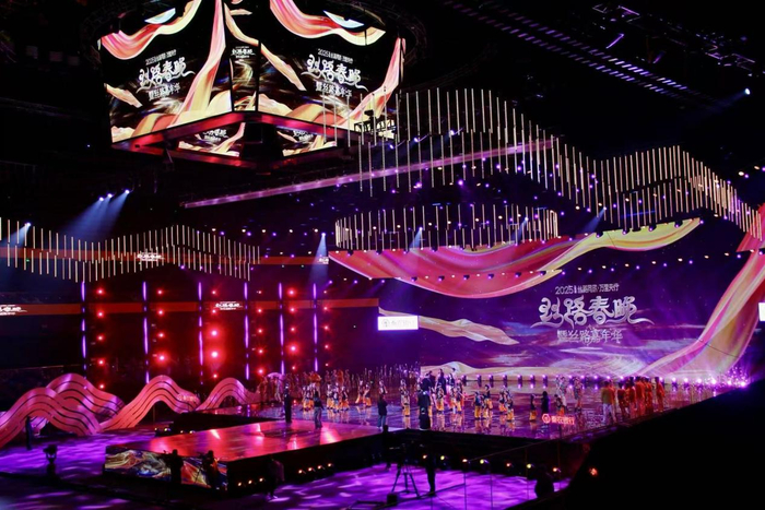 舞台效果一年比一年精美,节目一年比一年“神奇”……你知道2025丝路春晚视听盛宴背后,有哪些创意和技术支撑起节目效果的“年年向上”吗?走进《丝路同欣·万里共行 2025丝路春晚》的录制现场,首先映入眼帘的就是舞台中央大屏幕上一条飘逸的七彩丝带,象征着丝绸之路的繁荣与多元文化的交融。