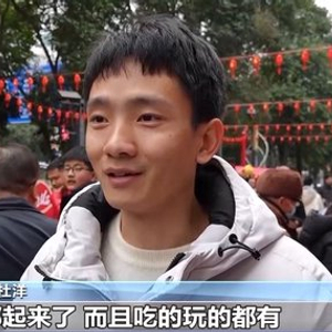绵阳市民 杜洋:特别热闹、特别有年味。人气都起来了,而且吃的玩的都有,剪纸我也体验了,非常好。