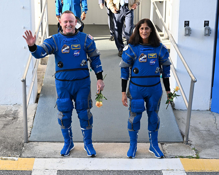 当地时间2024年6月5日,美国佛罗里达州,美国宇航员巴里·威尔莫尔和苏尼·威廉姆斯准备搭乘“星际客机”飞船前往国际空间站。图/IC photo