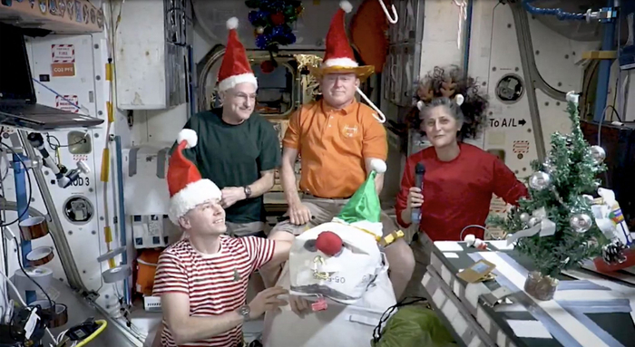 当苏尼·威廉姆斯和布奇·威尔莫尔今年6月飞赴太空时,他们未曾想过会在国际空间站度过圣诞节。最近,美国国家航空航天局(以下简称“美国航天局”)在社交媒体上发布了一段视频,展示了驻留国际空间站的宇航员如何度过圣诞节。视频中,一棵小巧的圣诞树立在一旁,威廉姆斯穿着红毛衣,威尔莫尔头戴圣诞帽,与其他宇航员一起庆祝。