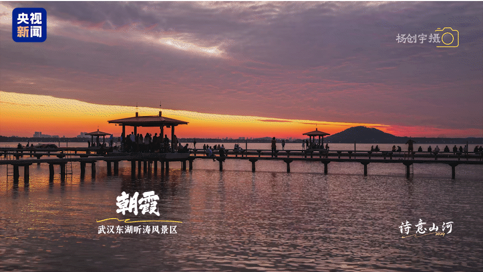 金山岭长城、武汉东湖等地的绝美朝霞