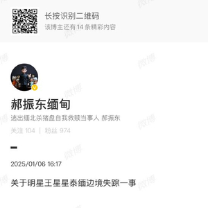 1月5日晚,演员星星的女友(@失眠爹地)发文:演员星星赴泰国进组拍戏,于北京时间1月3日中午12时许在泰缅边境失联。6日,缅北电诈亲历者@郝振东缅甸 发文,谈星星泰缅边境失联。他称:“很多人给缅北,缅东分不清楚,缅北包含果敢,佤邦。木姐,万海。当阳,南邓,这些地方尤为出名。现在还有大量未成年,以及国人困在,孟能招财集团,万海华盛号称3万人诈骗基地,还有当阳地区,木姐地区。现在依然猖獗。”