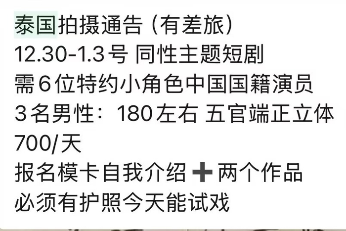 业内人士:“泰国剧组”曾在演员通告群发布招募信息