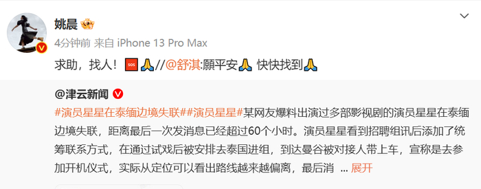 姚晨、董成鹏大左等多位明星转发寻人 有演员爆料类似受骗经历