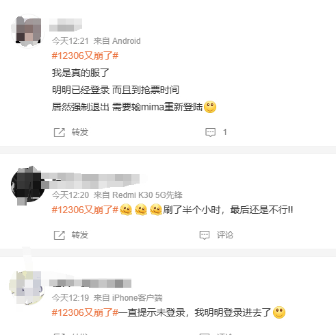多名网友发帖称“12306又崩了”,出现了无法登陆、购票卡顿等情况。