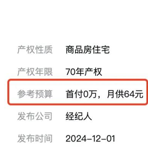 月供64块钱的房子 图源|安居客