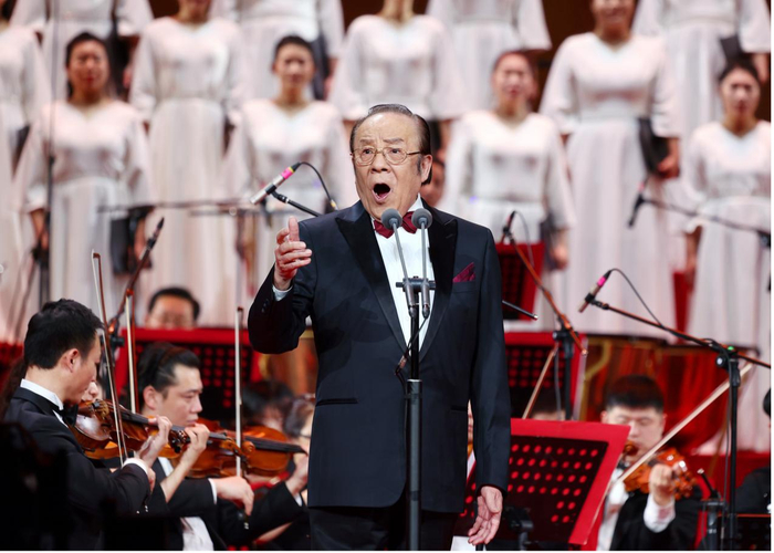 音乐会现场北京交响乐团携手杨洪基、阎维文、蔡国庆、张凯丽、佟铁鑫、成方圆、刘和刚、薛皓垠等众多知名艺术家,以及北京音乐家协会合唱团、北京音乐家协会童声合唱团登台。84岁的男中音歌唱家杨洪基不仅以《我和我的祖国》这首经典歌曲诉说自己对祖国的深情,还用俄语与汉语两种语言演唱了俄罗斯经典歌曲《莫斯科郊外的晚上》。“2025年新年是蛇年,也是我的本命年,希望我的歌声可以为观众朋友送去新春祝福!”