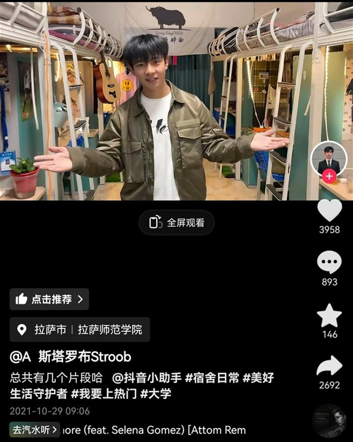 极目新闻记者梳理发现,斯塔罗布个人社交账号认证是拉萨广播电视中心的主持人,其抖音账号置顶了去年4月8号发布的一条视频,配文表示:慢慢来,谁还没有一个努力的过程,努力努力再努力!而另一条则是他2021年10月29日在大学宿舍拍摄的视频。2023年6月15日,他还发布了多张毕业时的合影。