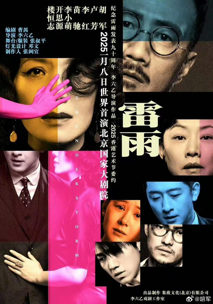 在胡军眼里,《雷雨》是一个大众耳熟能详的故事。它以1925年前后的中国社会为背景,讲述了两个阶级分明的家庭、八个被命运捉弄的悲剧人物、前后延宕三十年之久的恩怨。