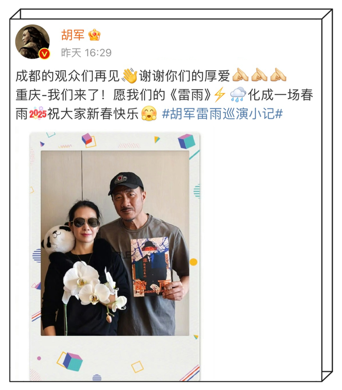 2025年,即将满57岁的胡军与导演李六乙合作,在成都城市音乐厅,在最新的舞台,还原了最本真的《雷雨》。