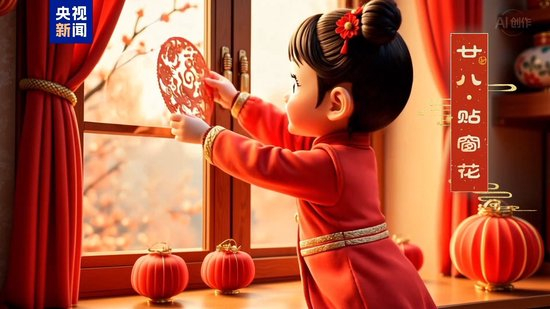 “二十八,贴窗花”。鲜艳的窗花贴在窗户上,为家中增添浓浓的喜庆氛围,表达对美好生活的向往。