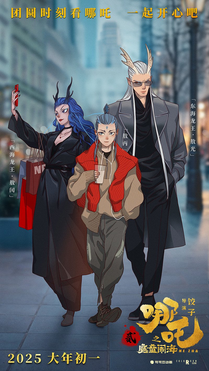 电影《哪吒之魔童闹海》今日发布“现代装全家福”海报及“哪吒一家踢毽子”彩蛋。彩蛋中哪吒终于实现了五年前的心愿——与父母一起踢毽子。不到40秒的彩蛋,已充分感受到影片的“强喜剧”“宜阖家观影”的气质。“现代装全家福”海报中:哪吒与父亲母亲、敖丙与父亲姑姑穿着统一色系的衣服走上新春街头,享受春节阖家团圆时光。影片由2019年年度票房冠军《哪吒之魔童降世》的原版人马制作,以全年龄段的表达讲述魔丸哪吒的又一全新成长。