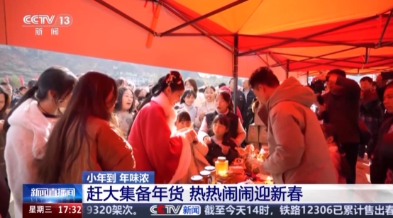 在江西铅山县,这里的年货大集上人头攒动,香菇、红薯粉皮、蜂蜜、茶叶等十多种山货特产集中展销,吸引了周边上千群众来赶大集,备年货。