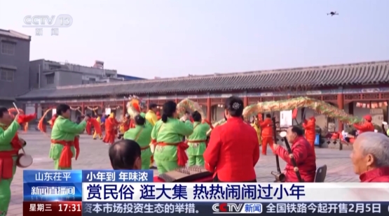 在山东聊城茌平区的大集上,人们赏民俗、品非遗、买年货,热热闹闹过小年。