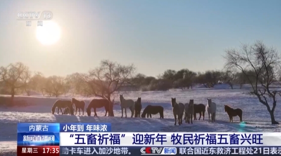 在内蒙古的一些牧区,腊月二十三是一个重要的传统节日,当地锡林郭勒盟西乌珠穆沁旗的牧民会在头一天,就打扫牲畜圈舍,进行“五畜祈福”迎新年的习俗,祈福新的一年风调雨顺。