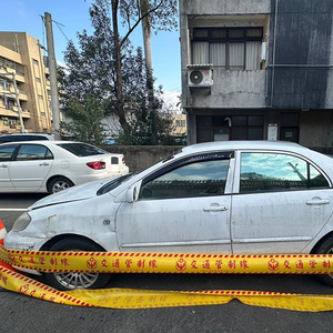 警方于24日深夜在新竹市某处偏僻道路寻获凶手逃逸所乘的白色轿车。图源:中时新闻网