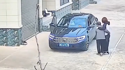奶奶看到后开心小跑上前拥抱